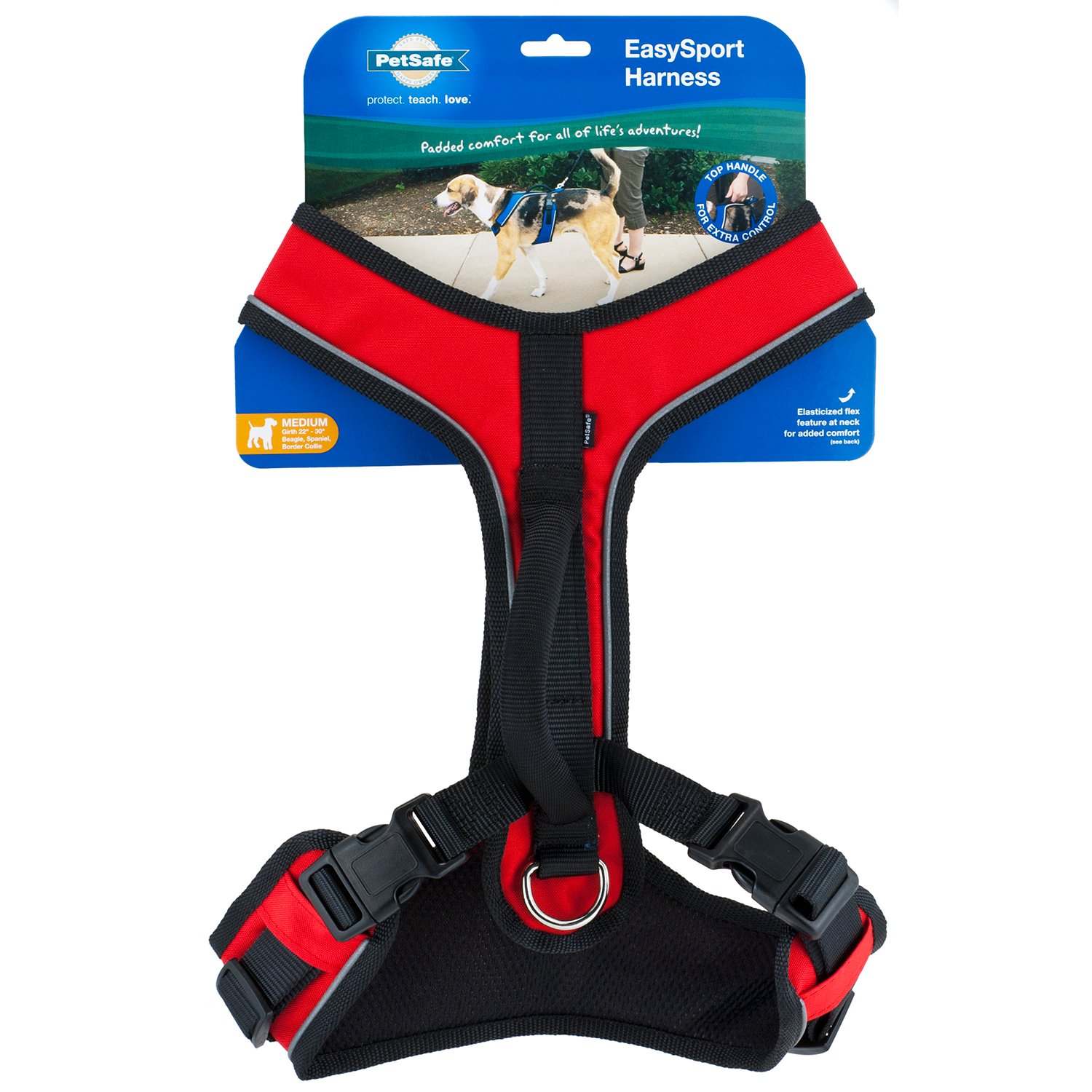 Petsafe Easysport Harness Large Red Easysport Harness The elastic neckline easily slides over your dog's head when you take. This harness is fully adjustable for dogs of all shapes and sizes. The easysport harness is padded throughout to help keep your. It has 2 buckles, making it quick and easy to get on and off. The handle on this harness gives you an extra degree of safety. Easysport Harness.