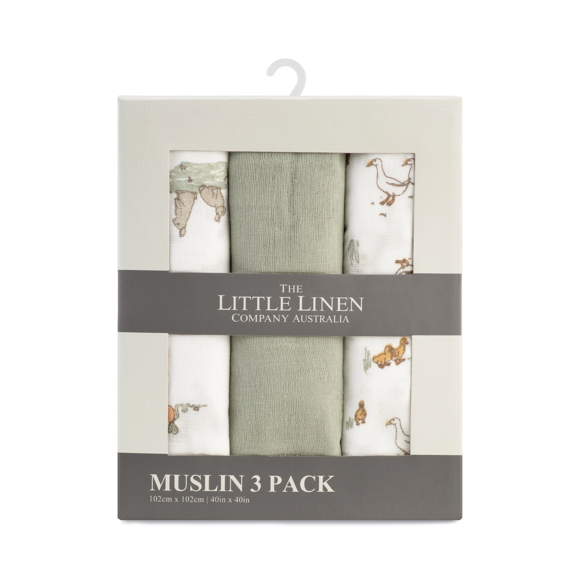 The Little Linen Co. Muslin Wrap Farmyard Lamb 3 Pack Wraps Baby