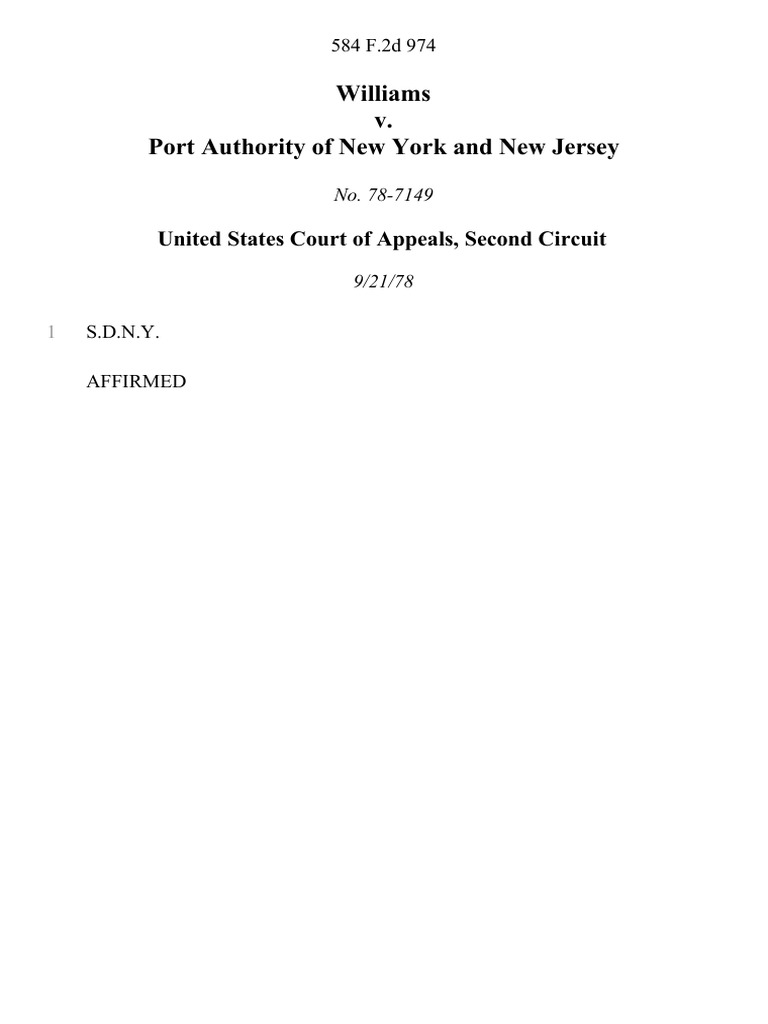 Williams v. Port Authority of New York and New Jersey, 584 F.2d 974, 2d