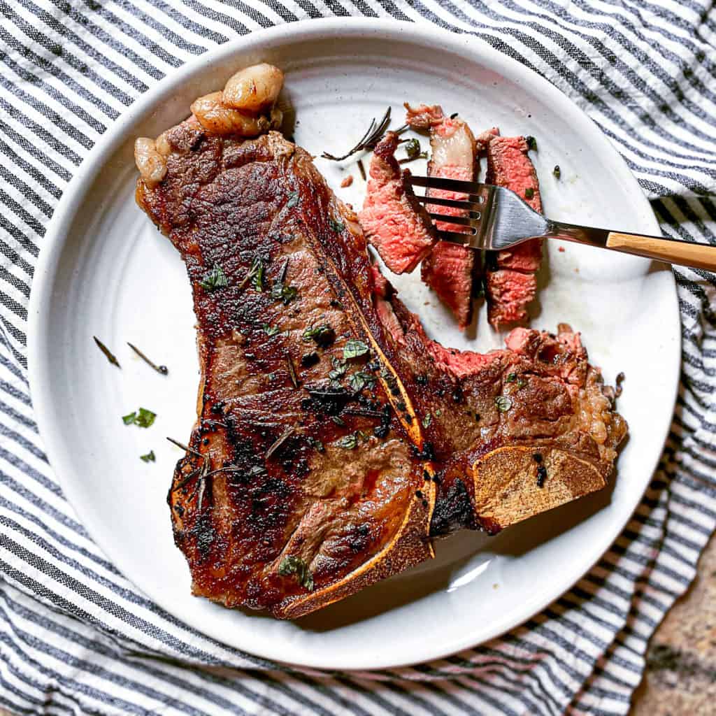 Porterhouse vs. TBone What's the difference? T Bone Steak Vs Porterhouse There is a lot of confusion around this. Both cuts give you a strip steak and a filet mignon. But which should you choose? Porterhouse steaks are cut from the rear end of the short loin and thus include more tenderloin steak, along with (on the other side of the bone) a large strip steak. Whether you prefer filet mignon. T Bone Steak Vs Porterhouse.