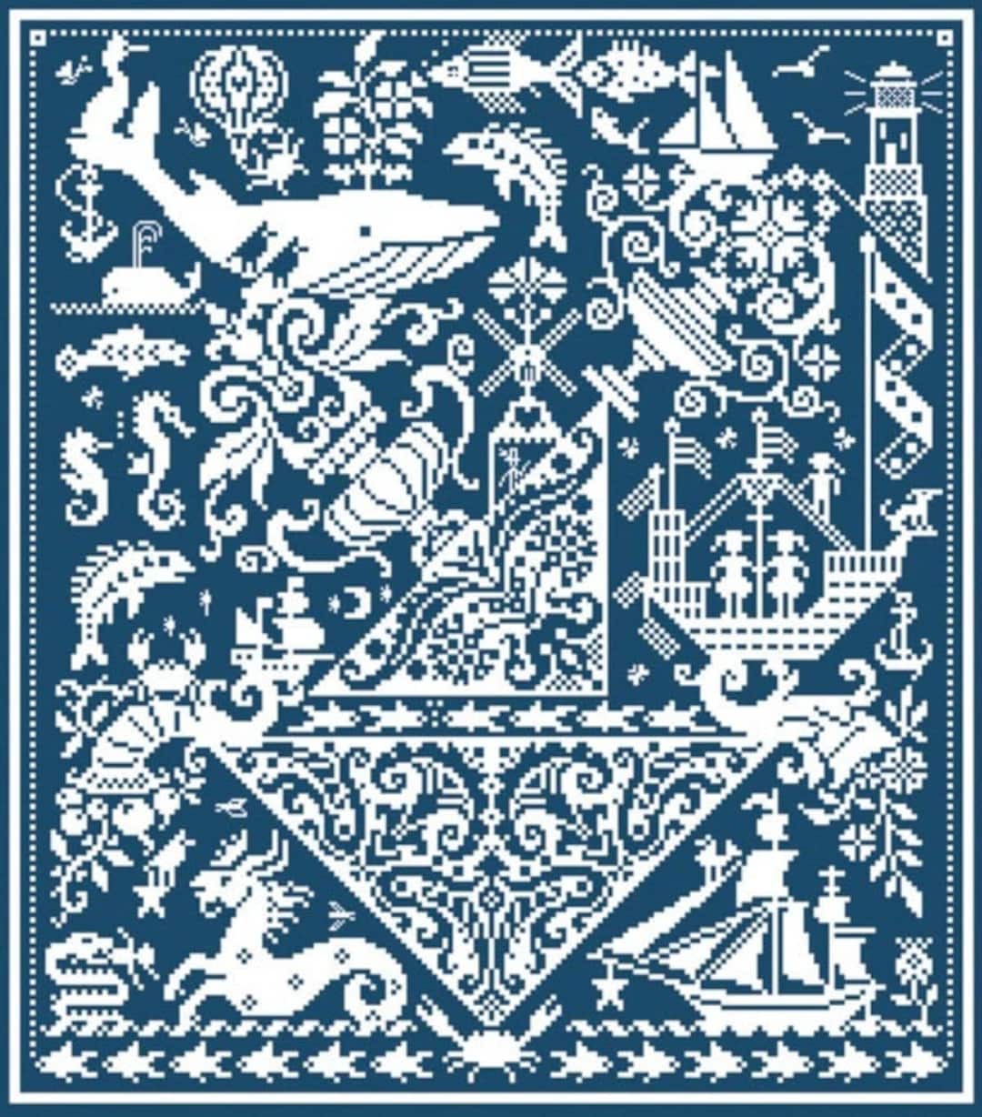 Fish 'n Ships Long Dog Sampler Cross Stitch Chart Etsy