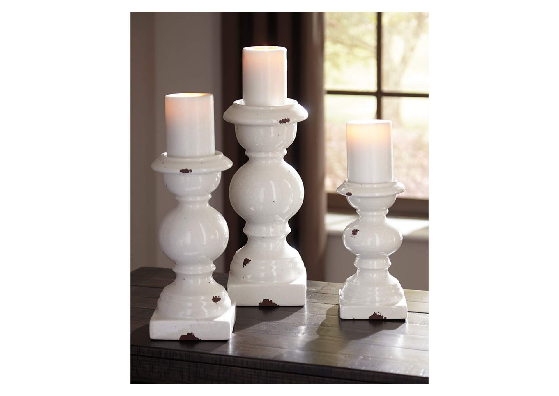 Incorporate a touch of heirloom charm with this. Set of 3 candle holders. Holds (3) 3″ pillar candles (candles not included). Incorporate a touch of heirloom charm with this trio of ceramic candle holders. Whether your taste is rustic farmhouse, shabby chic or vintage. Whether your taste is rustic farmhouse, shabby chic or vintage. More about this product devorah signature design by ashley candle holder, 8.49lbs. Whether your taste is rustic farmhouse, shabby chic or vintage. The devorah ceramic candleholders in white, set of 3 are traditional candle holders in a glazed antique white finish. 1m+ visitors in the past month