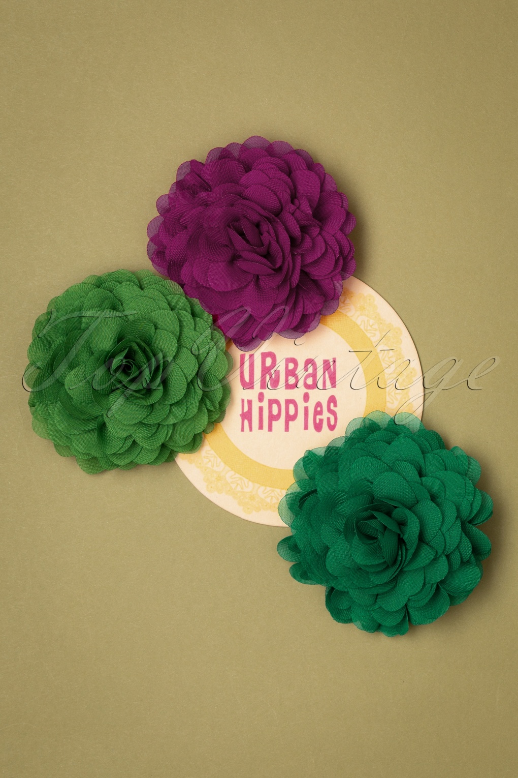 Urban Hippies 70s Hair Flowers Set in Clover, Meadow and Para Green