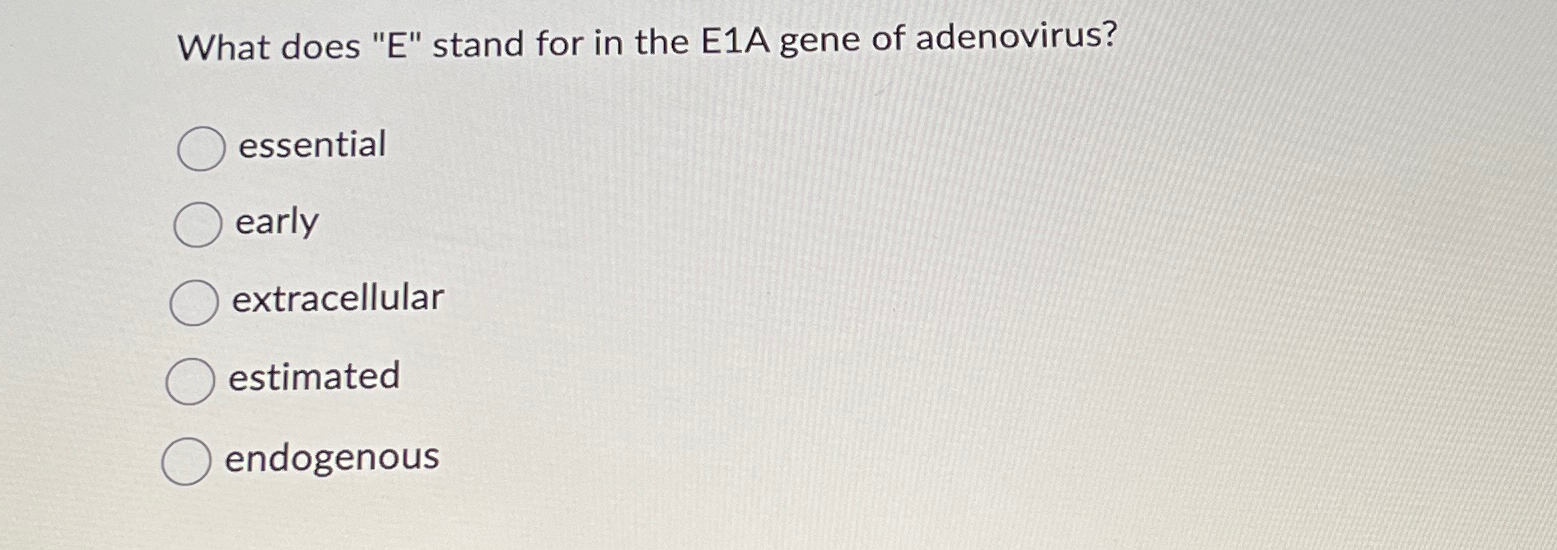 Solved What does "E" stand for in the E1A gene of