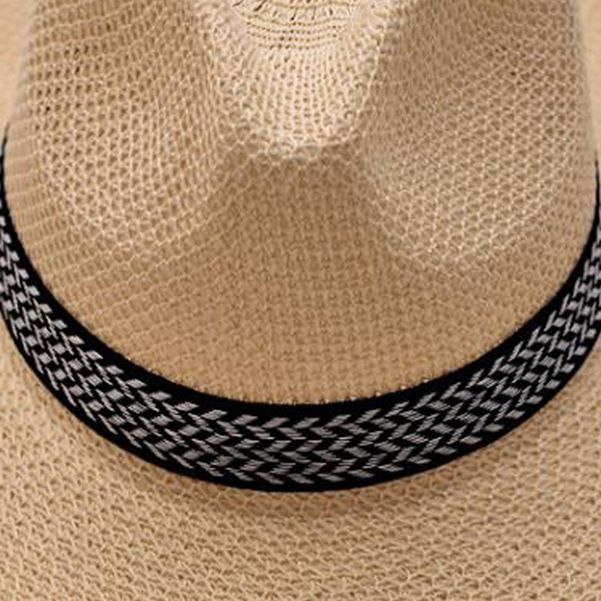Mens Straw Panama Hats Sun Protection Summer Beach Straw Top Hat Wide