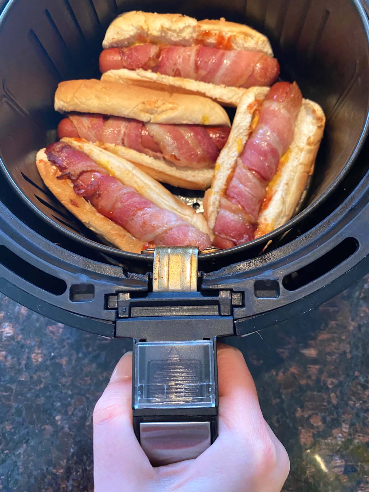BaconWrapped Hot Dogs in The Air Fryer Everyday Family Cooking Bacon Wrapped Hot Dogs In Air Fryer Xl These irresistible treats combine the smoky goodness of crispy bacon with the savory satisfaction of hot dogs, perfectly cooked in your trusty air fryer. Perfect for quick meals and family favorites. In the kitchen with matt. Making these in the air fryer is seriously a game changer. Air fryer bacon wrapped hot dogs — indulge in a mouthwatering twist on. Bacon Wrapped Hot Dogs In Air Fryer Xl.