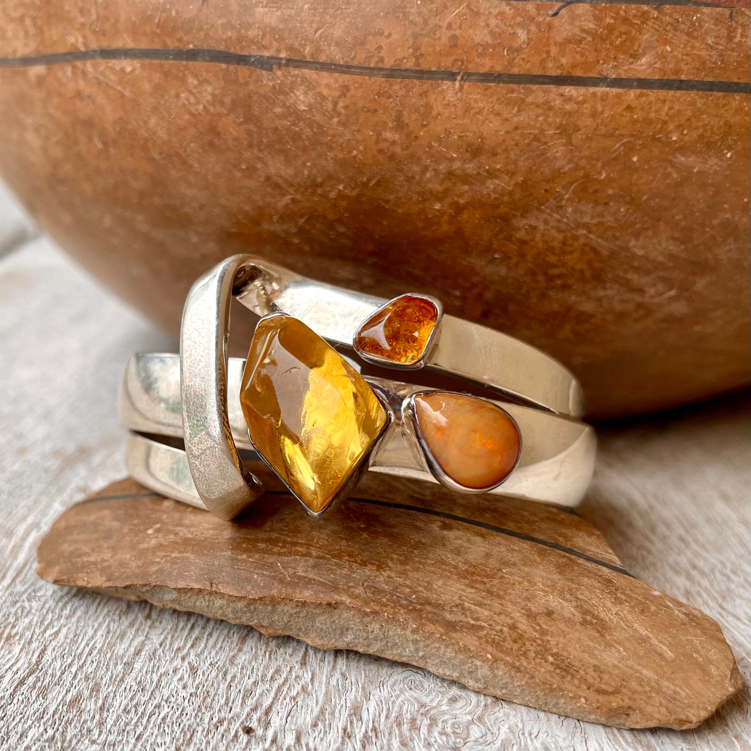 Citrine (Chipped) & Opal Sterling Silver Cuff Bracelet by Lilly Barrack