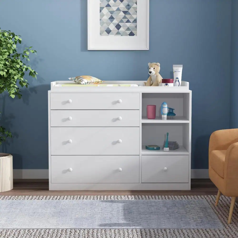5Drawers White Wood Chest of Drawers Dresser Vanity Table Storage
