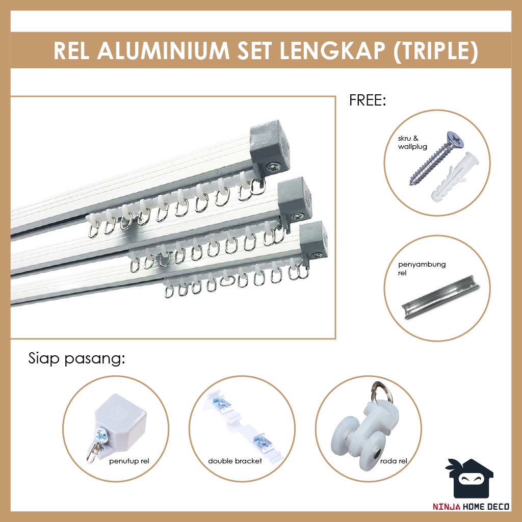 0.9mm Rel Langsir Aluminium Set Lengkap Jenis Triple (0.9mm Aluminium