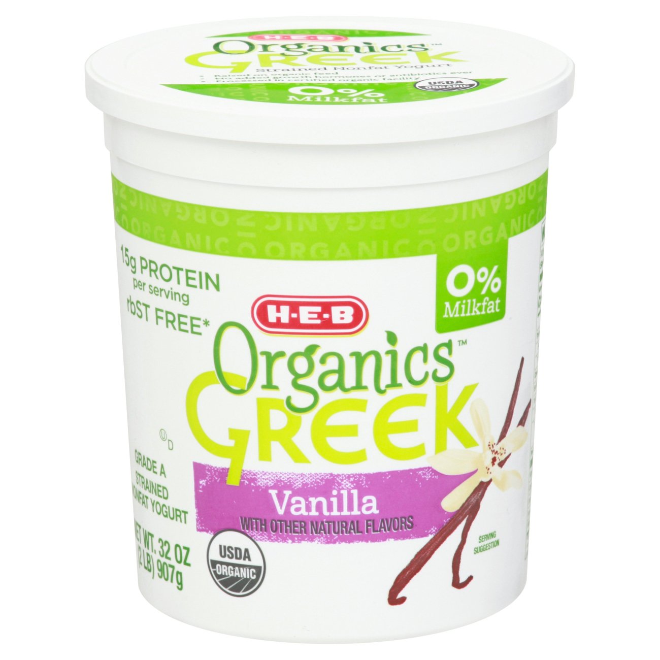 HEB Organics 15g Protein Nonfat Greek Yogurt Vanilla Shop Yogurt