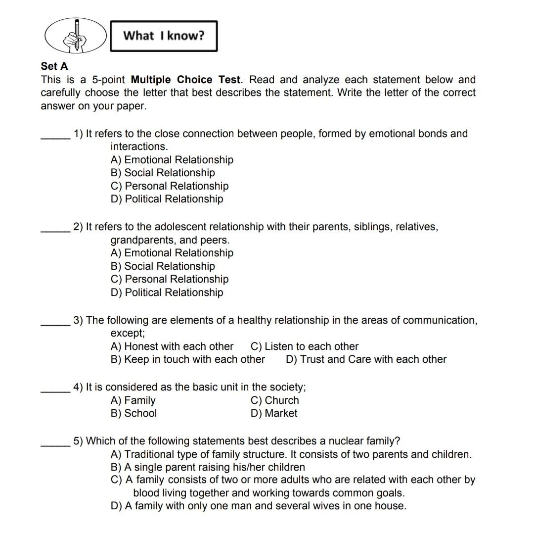 Solved What I know? Set A This is a 5point Multiple Choice