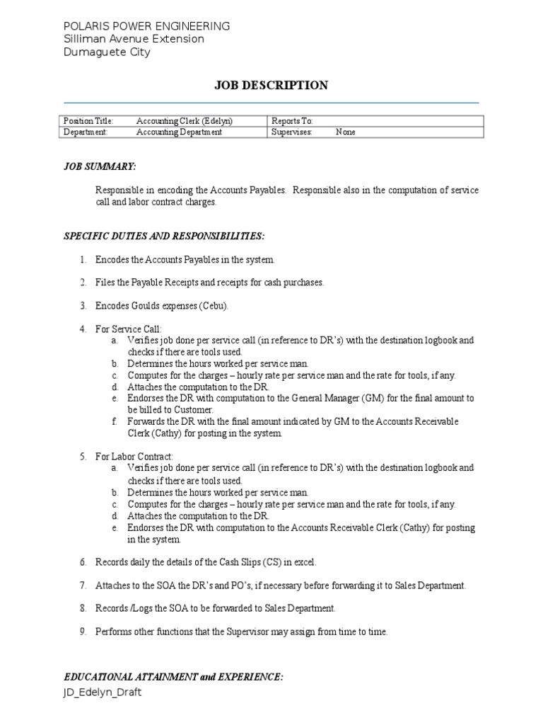 Job Description Polaris Power Engineering Silliman Avenue Extension