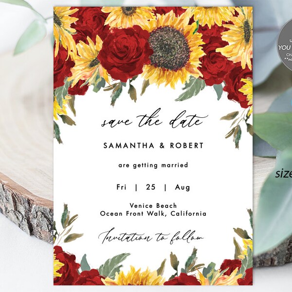 Rustic Sunflower and Red Roses Save the Date Printable Etsy Sunflower And Roses Save The Date Cards Share all of life’s moments at zazzle with sunflower and roses save the date invitations, cards & stationery! Check out our sunflower and roses save the date cards selection for the very best in unique or custom, handmade pieces from our shops. Sunflower and navy wedding, sunflower save the date, printable save the date template, navy blue sunflower, rustic save. Sunflower And Roses Save The Date Cards.