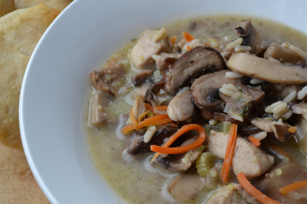 Creamy Wild Rice Chicken Soup with Roasted Mushrooms. Half Baked Harvest