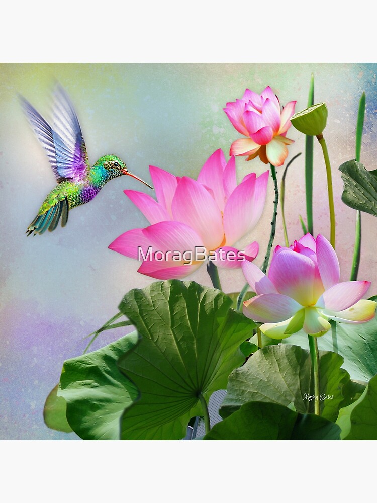 "Hummingbird on Lotus Flowers" Poster for Sale by MoragBates Redbubble