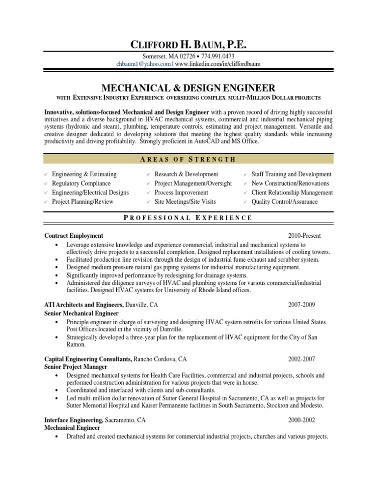 HVAC Engineer Project Manager in Boston MA Resume Clifford Baum PDF