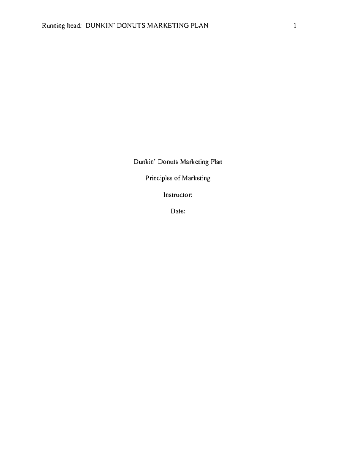 Dunkin donuts marketing plan Running head DUNKIN’ DONUTS MARKETING