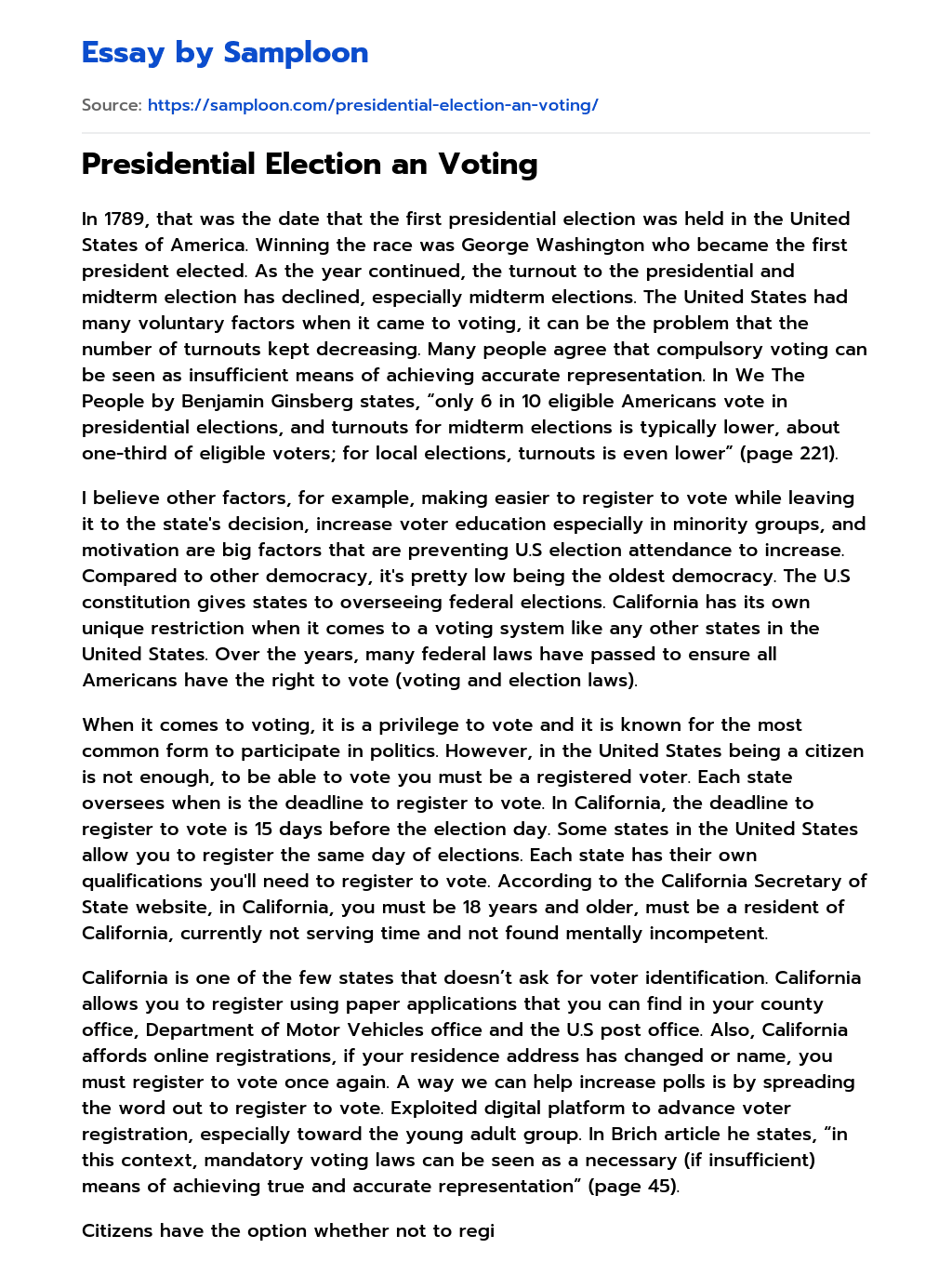 ≫ Presidential Election an Voting Free Essay Sample on