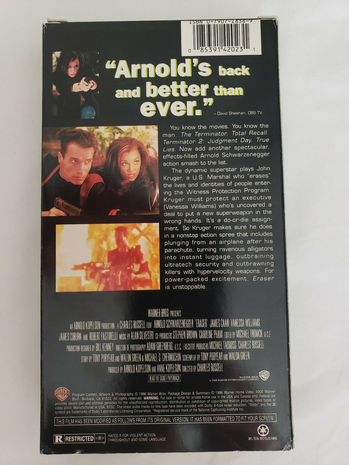 Eraser 1996 VHS Movie VCR Arnold Schwarzenegger Vanessa Williams James