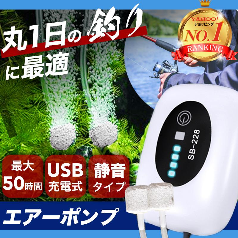 エアーポンプ エアポンプ 釣り 水槽 充電式 USB ぶくぶく 静音 2口 220816072FUKURAM 通販 Yahoo