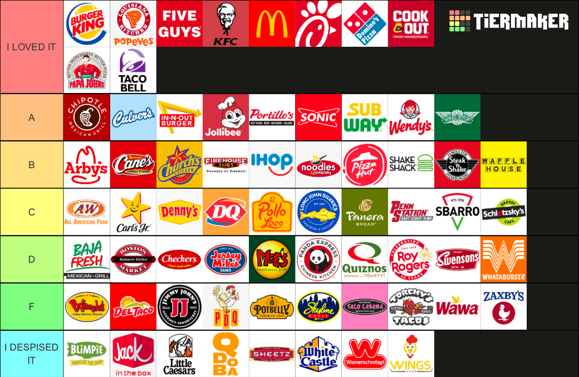 My fast food restaurant tier list Fandom