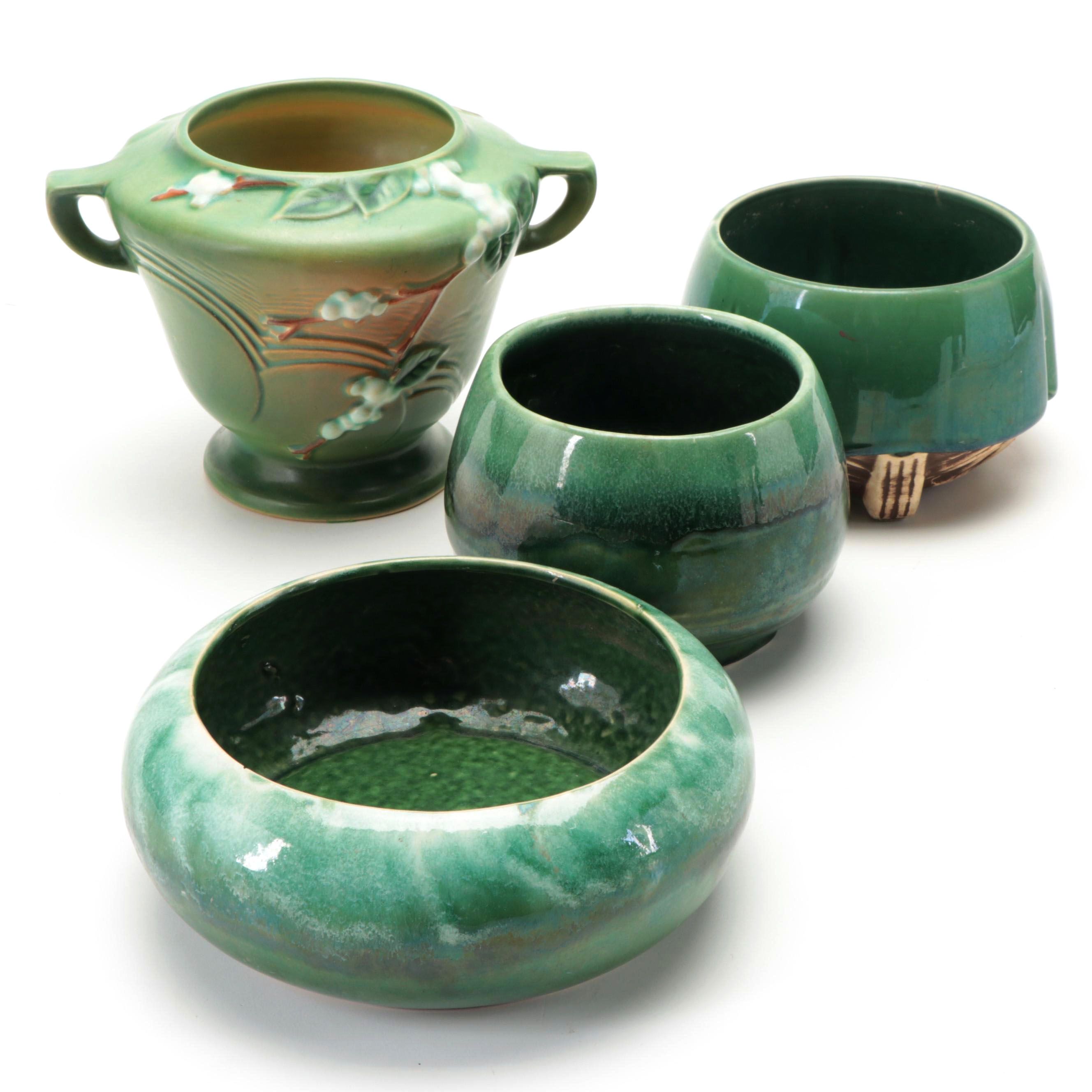 Roseville "Snowberry Fern Green" Vase with McCoy and Other Ceramic