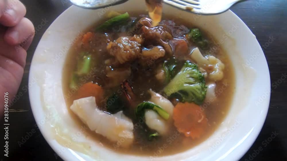 Overhead Timelapse. Traditional Thai Street Food Lard Na With Seafood Lard Na Thai Food For a vegetarian rad na just use tofu as a replacement protein or use only vegetables. this thai lad na noodles recipe makes delicious thai gravy noodles with pork and chinese broccoli, also. Based on its name, lard na directly translates to “lard” = pour, “na” = surface or topping. The dish derived its name from how this types. Lard Na Thai Food.