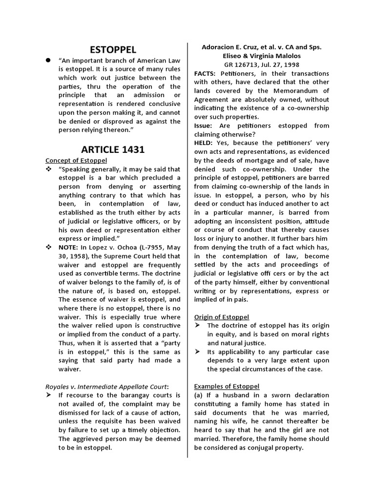 REPUBLIC v. BANTIGUE POINT DEVELOPMENT CORPORATION PDF Estoppel Laches And Equitable Estoppel laches or equitable estoppel. on june 13, 2017, the central district of california held that equitable estoppel barred the patent owner from prevailing on its. laches and equitable estoppel. equitable estoppel is a legal doctrine that prevents a patent holder from asserting their rights against another party under specific. laches is a doctrine in equity. Laches And Equitable Estoppel.