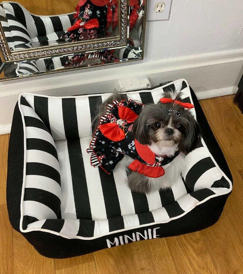 Black & White Stripe Dog Bed With Embroidery Stripe Bold Etsy