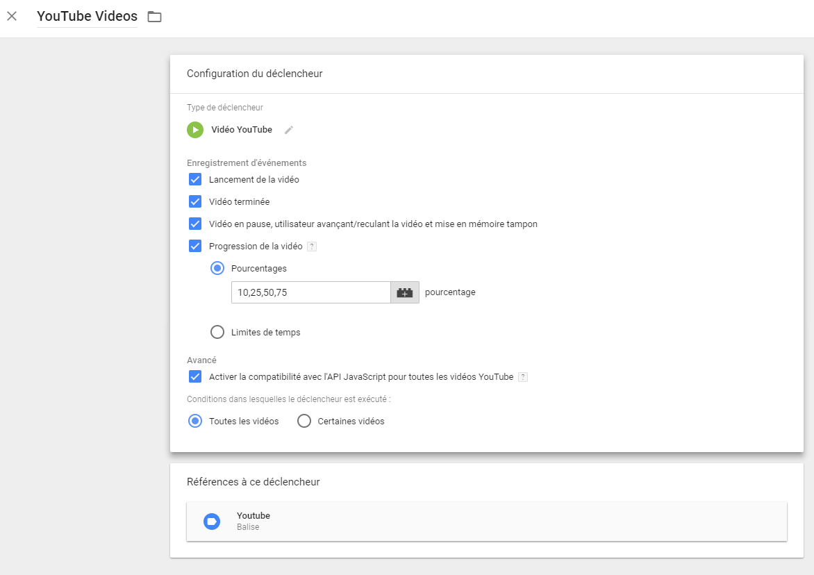 Créer un suivi/tracking des vidéos Youtube sur son site avec Google Tag