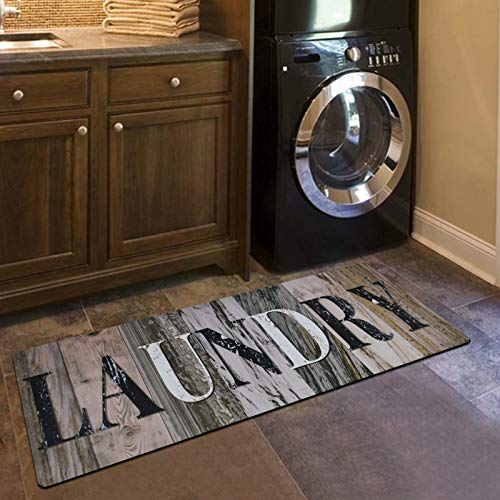 Farmhouse Laundry Room Rug, Vintage Wood Laundry Room Decor Mats