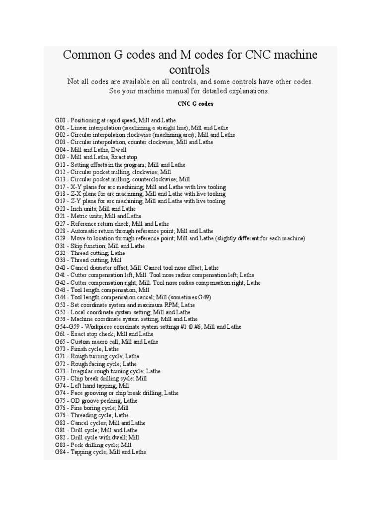 CNC Milling G+M Code List Metalworking Industrial Equipment Machinery Code Actually, both the object code and executable code are machine codes. Learn about its structure, instruction set, program execution, and assembly. It is read by the computer's central. The difference is that object code is not the completed program. Enter the hs code or keyword (s) describing the product (more info) how does it work? Machine code is a low. Machinery Code.