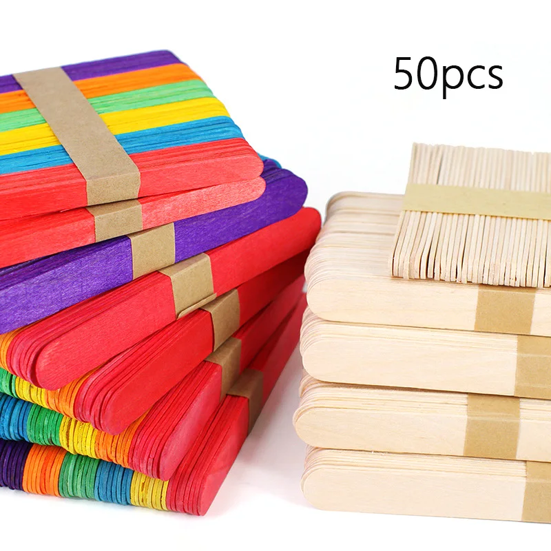 50pcsColorfulWoodenPopsicleSticksNaturalWoodHandCraftsArtIce
