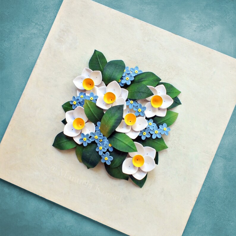 3D Paper Quilling Daffodil, Narcissus, Me Not Flowers Wall Art Quilling Forget Me Not Check out this quilled forget me not card. It is a bit of a challenge to make these. Some of the tools i used in this. While expensive store bought cards can be beautiful, there is nothing that shows your love better than a homemade card. Now this is a paper card that will blow any recipient away! If you. Quilling Forget Me Not.
