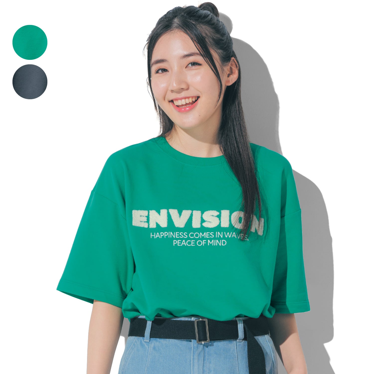 ベルメゾン サガラ刺しゅうミニ裏毛ハーフスリーブプルオーバー チャコール J-XS(145~155)(J-XS(145~155) チャコール
