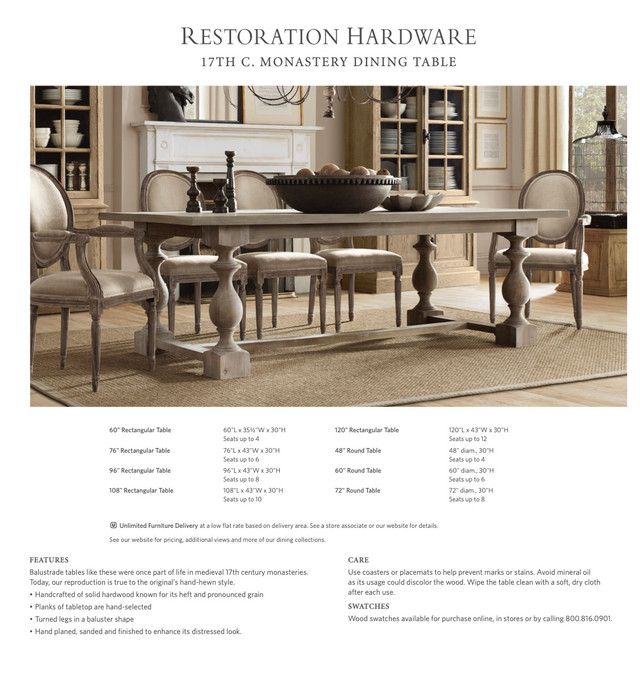 Restoration Hardware Monastery 96" Dining Table 10 chairs Dining