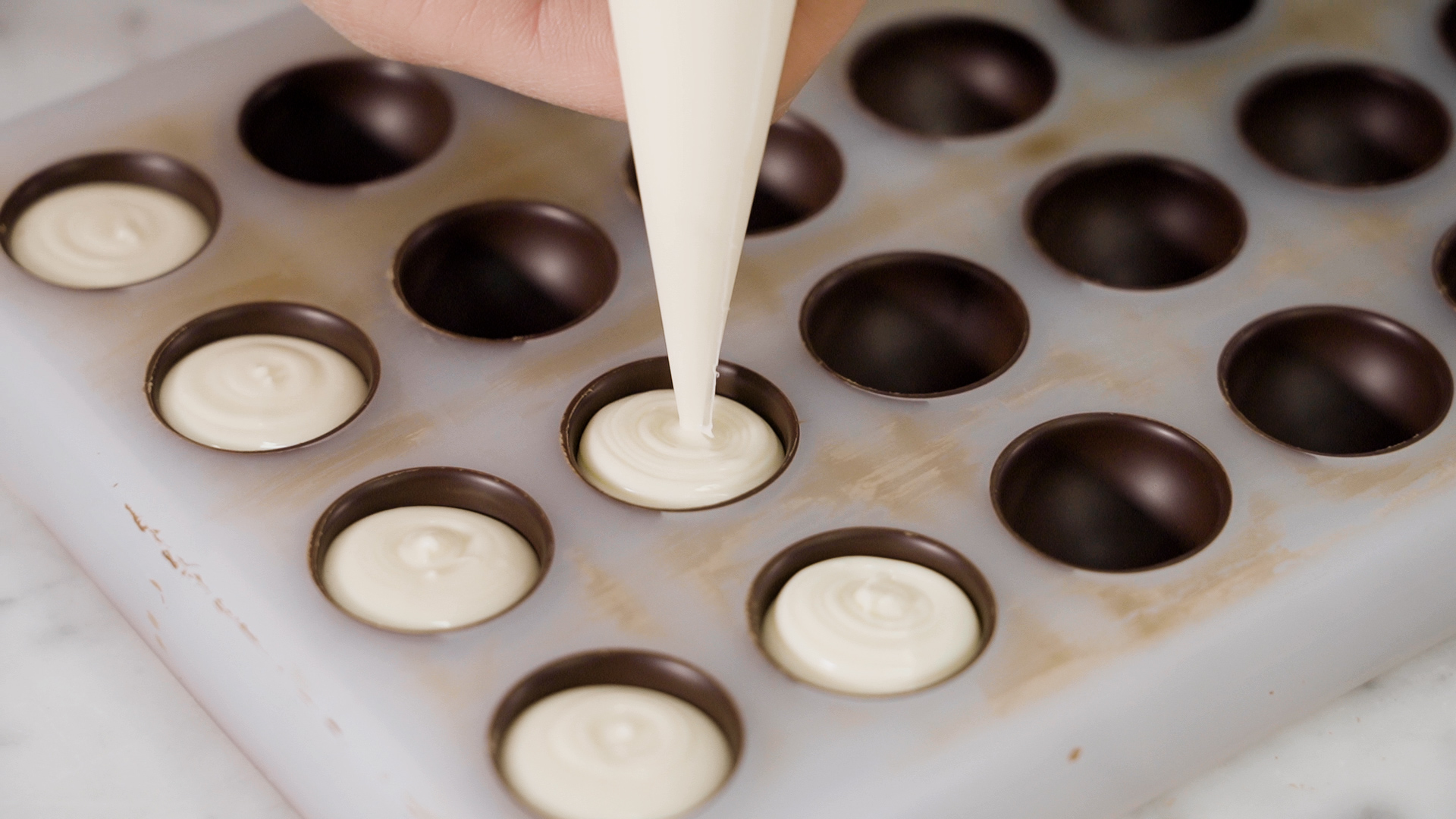 Filling of bonbons with cream filling YouTube Fillings For Bonbons An enrobed bonbon or enrobed praline is simply a chocolate confection dipped in couverture or run through an enrobing machine to coat it in a thin. Poured fondant has more of syrupy texture—the filling inside a chocolate covered cherry, for example—and is made with granulated sugar, water, glycerin and cream of tartar. There is no single trick to achieving perfect. Fillings For Bonbons.