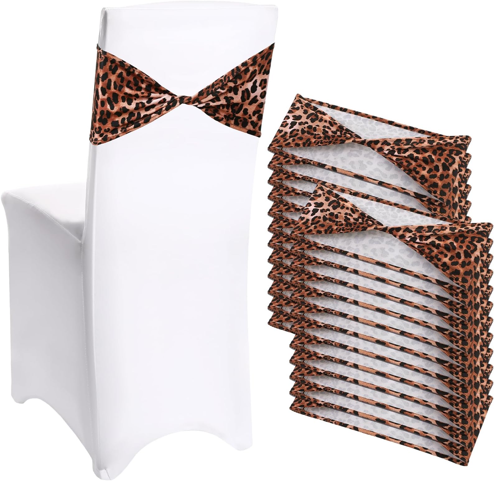 Newwiee 24 Pcs Leopard Print Spandex Chair Bands Animal