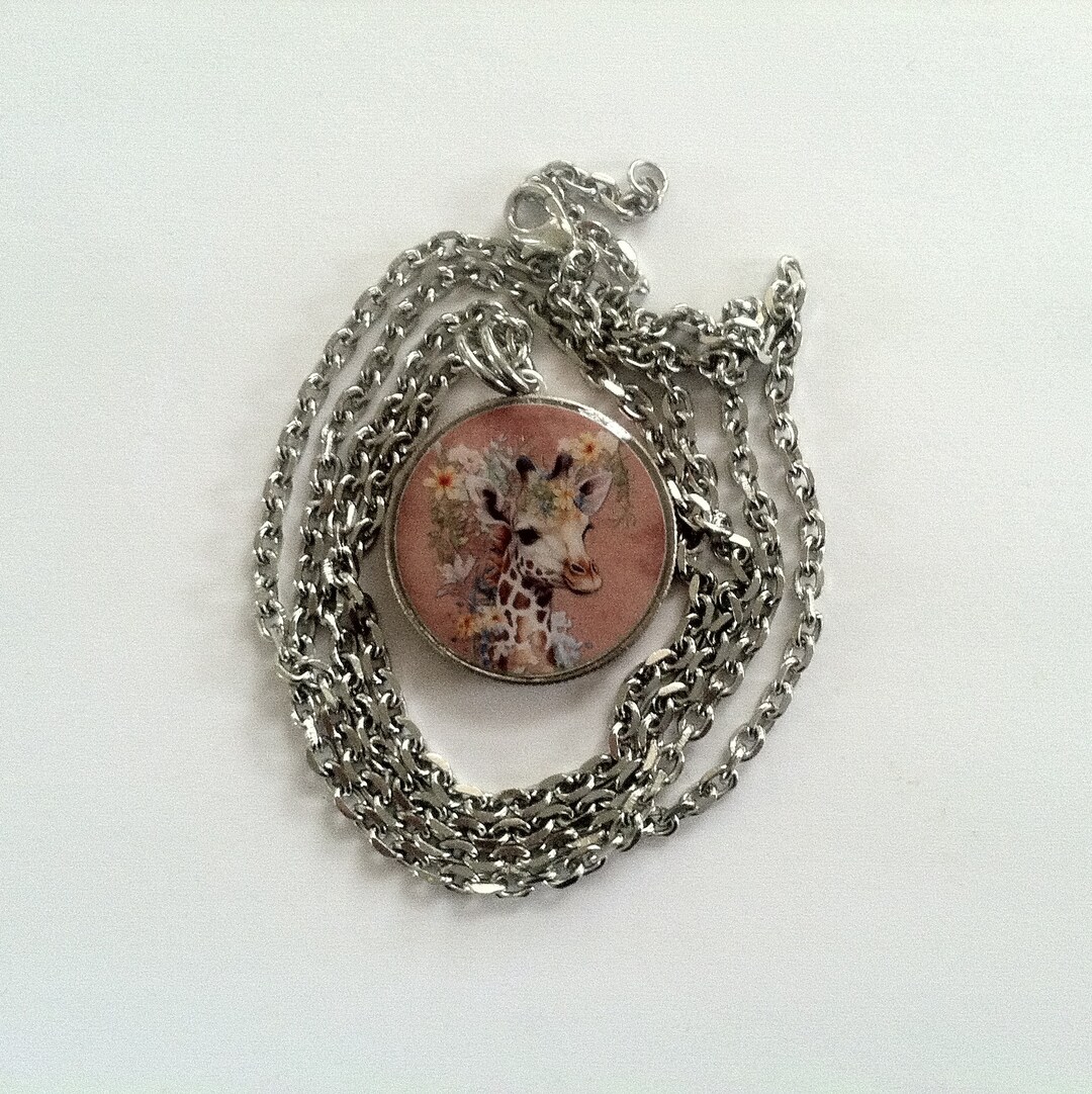 Giraffe With Flowers Quarter Pendant on Stainless Steel Chain Etsy