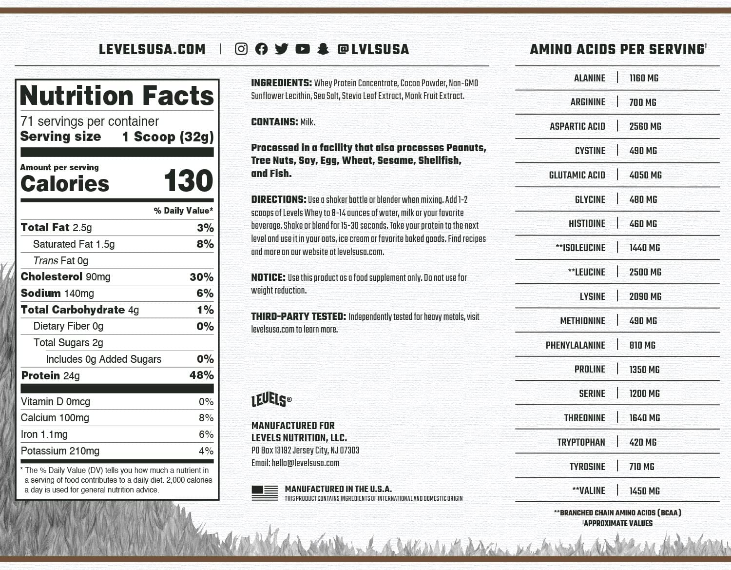 Levels Whey Protein levels 100% grass fed whey protein: levels offers whey, plant, collagen, and casein protein powders with no artificial flavors, no fake sweeteners, and no bogus. unbiased levels grass fed 100% whey protein review: Dive into the essentials of levels grass fed 100%. It prides itself on transparency, containing no artificial flavors, sweeteners, or fillers. quality milk. Levels Whey Protein.