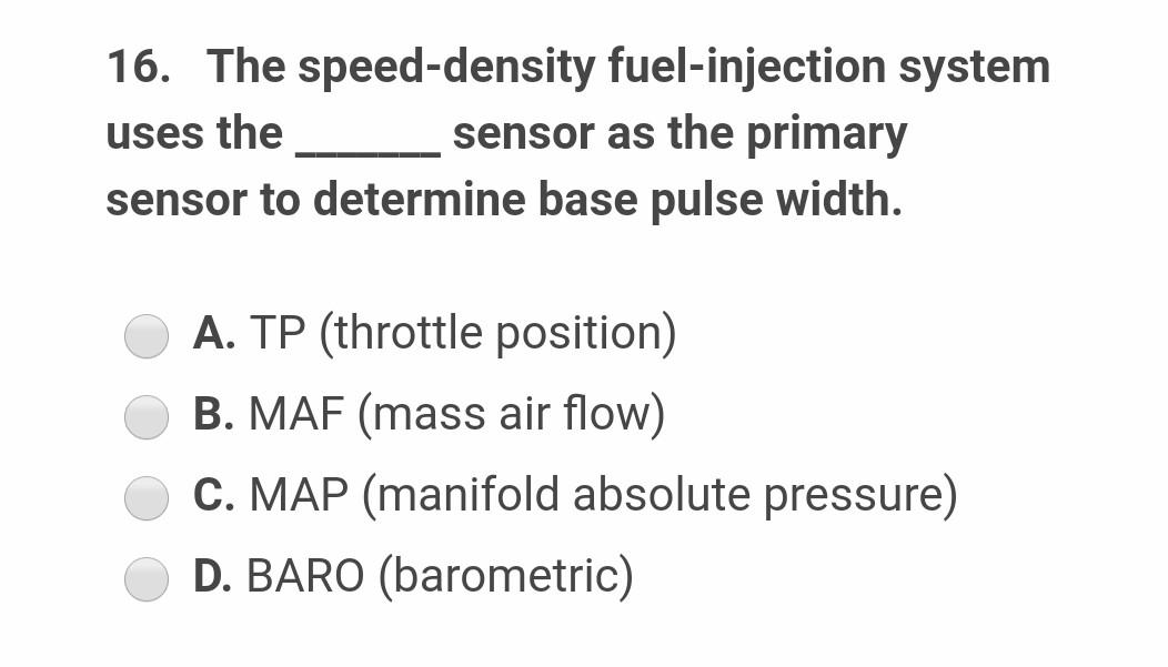Solved 16. The speeddensity fuelinjection system uses the