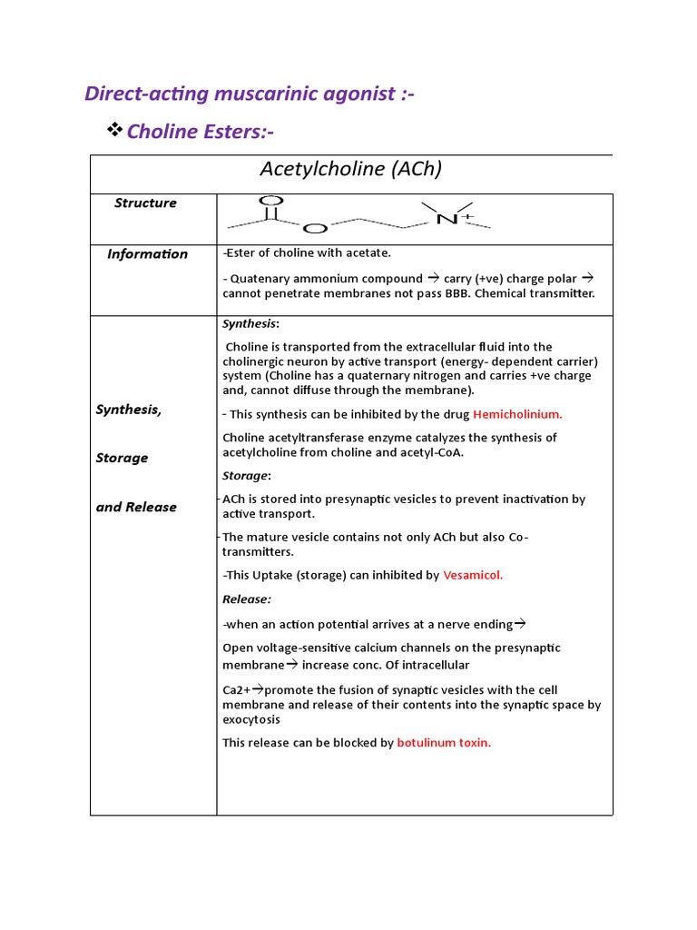 Direct Acting Muscarinic Agonist PDF Acetylcholine Physiology