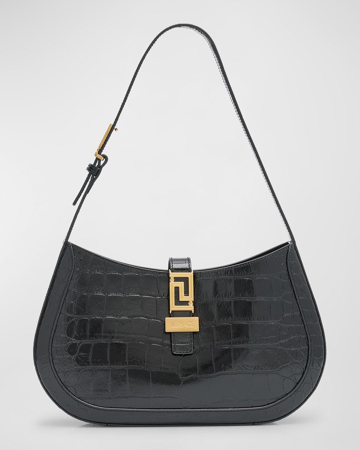 Versace Greca Goddess Large Crocembossed Hobo Bag in Black Lyst
