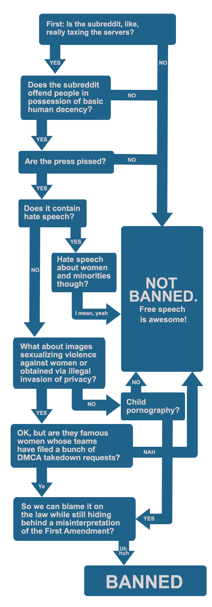 Should We Ban That Subreddit? A Flowchart Look Inside the Mind of