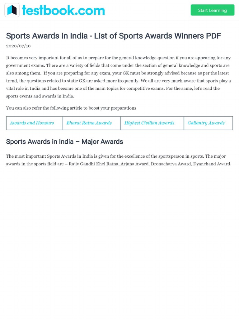 List of Sports Awards in India GK Notes PDF PDF