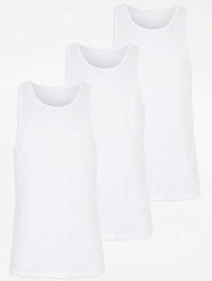 White Jersey Vest Tops 3 Pack Men at ASDA