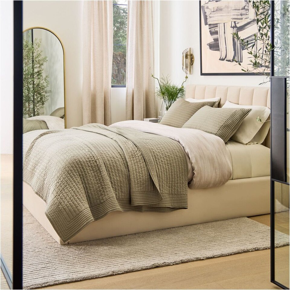 Silky TENCEL™ Pick Stitch Bedspread & Pillowcases West Elm UK