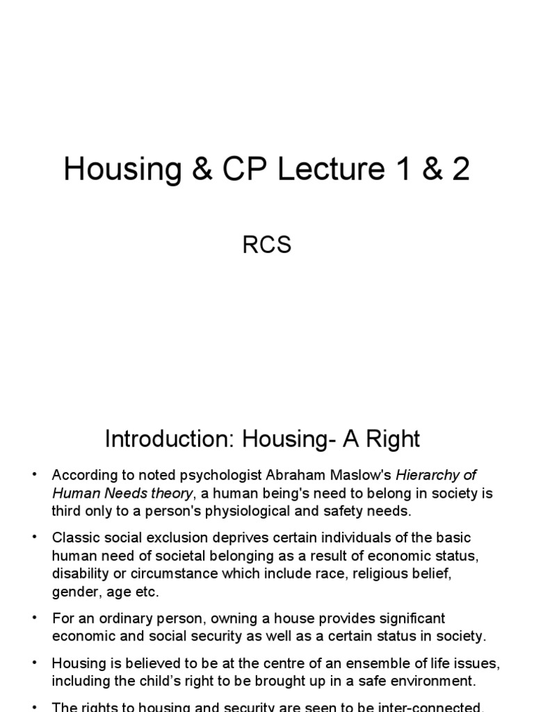 Understanding Housing as a Basic Human Right An Analysis of Key