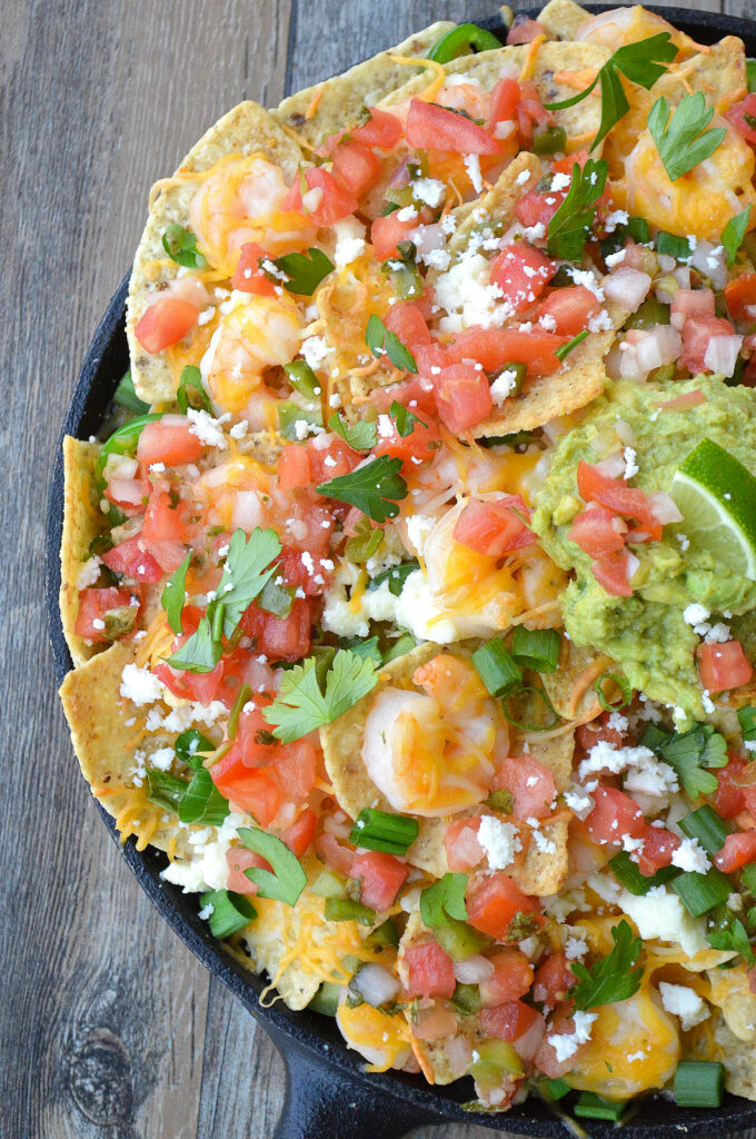 Shrimp Nachos Recipe Greek Shrimp Nachos Plus, the base recipe requires just 5 ingredients and about 15 minutes to come. When it comes to making nachos, what i love about it is you really don't need a recipe, you just add on as much or as little of the foods you enjoy. These easy shrimp nachos are a nice change from your typical beef or chicken.. Greek Shrimp Nachos.