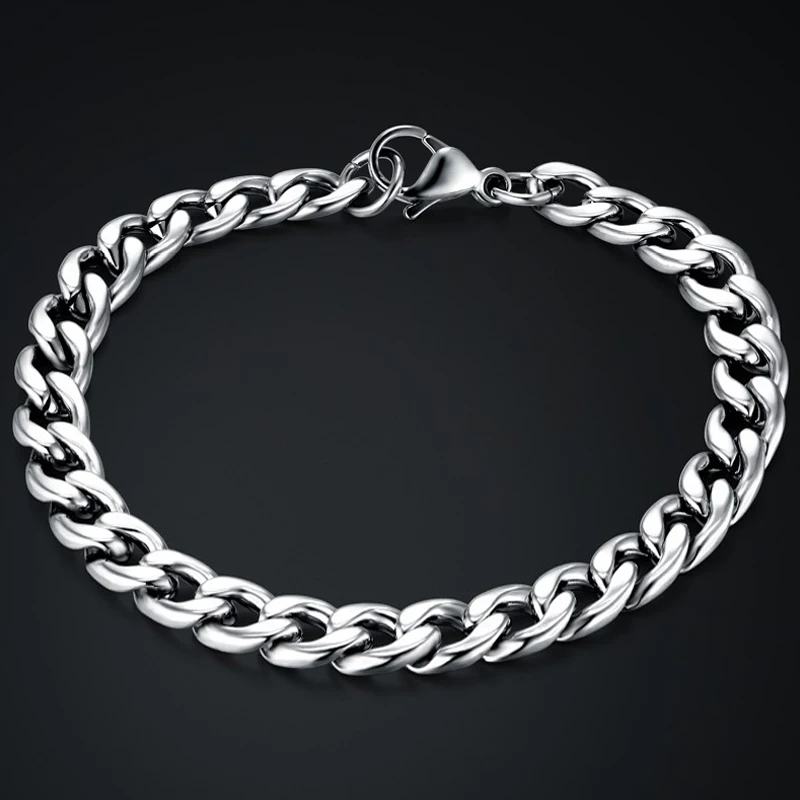 Buy Mens Silver Chain Men Bracelet Cuban Link Chain